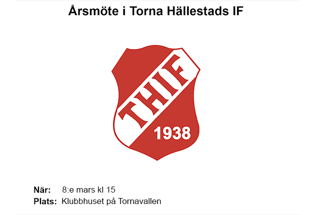 Klicka på bekräftelselänken i det mejl vi skickat dig för att börja ta emot uppdateringar från Torna Hällestads IF.
